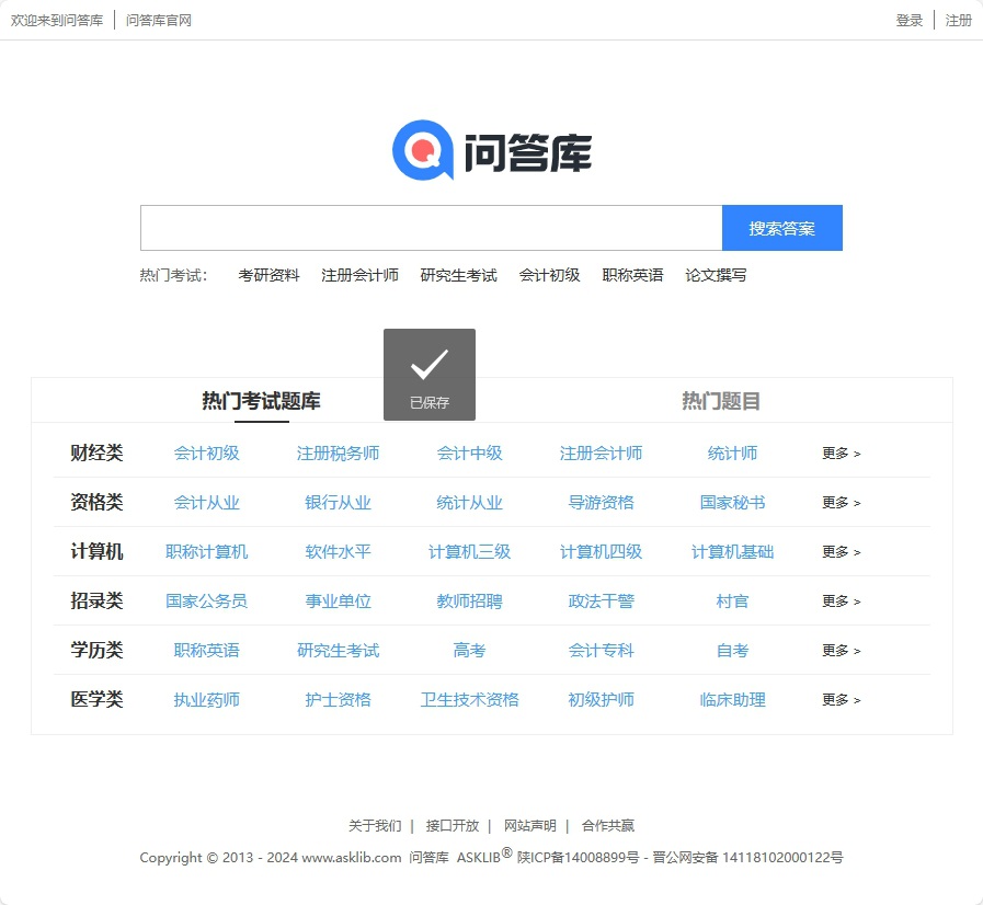 问答库是一个庞大的题库资源平台,汇集了公务员考试、建筑工程、IT认证、各类资格考试、会计从业、医药考试、外语考试、外贸考试以及学历考试等多个领域的数百万道题目。除了专业考试题库,问答库还包含了许多普通练习题,满足不同用户的需求。这个平台为备考者提供了一个全面的查询和学习资源,帮助他们高效复习和准备各类考试。