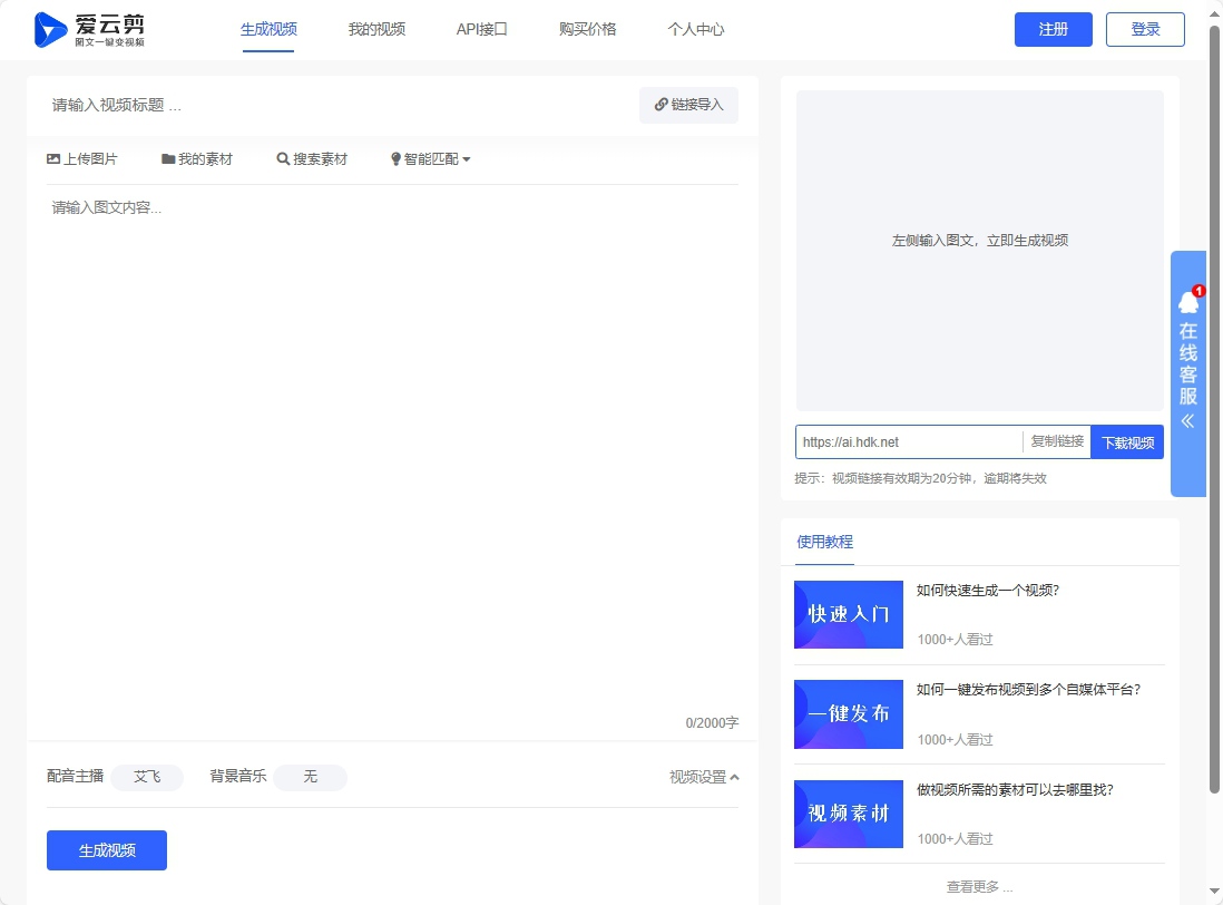 爱云剪是一款基于人工智能技术的图文转视频工具,旨在简化视频制作流程。它支持自动配音、自动生成字幕和智能匹配素材,使得即使是零剪辑基础的用户也能轻松快速地将文章和图片一键转化为视频。爱云剪还提供批量处理功能,可以一次性将多篇文章或图片生成视频,极大地节省了时间。平台操作简便,用户只需上传图片、输入标题和内容,选择合适的配音主播和背景音乐,点击生成按钮即可完成视频制作。
