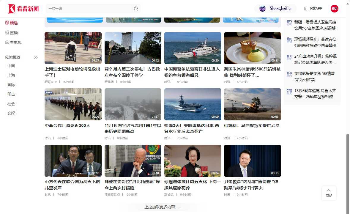 看看新闻网,作为国内领先的视频新闻平台,致力于为用户提供全方位的全球资讯。该网站依托SMG的丰富资源,提供最新的视频新闻和24小时直播服务,用户可以轻松搜索并上传自己的视频新闻。内容涵盖国际热点、突发事件以及本地民生等多方面信息,并设有直播、上海、图片、娱乐等多个频道。看看新闻网还推出了江湖视频和看看新闻两大APP。