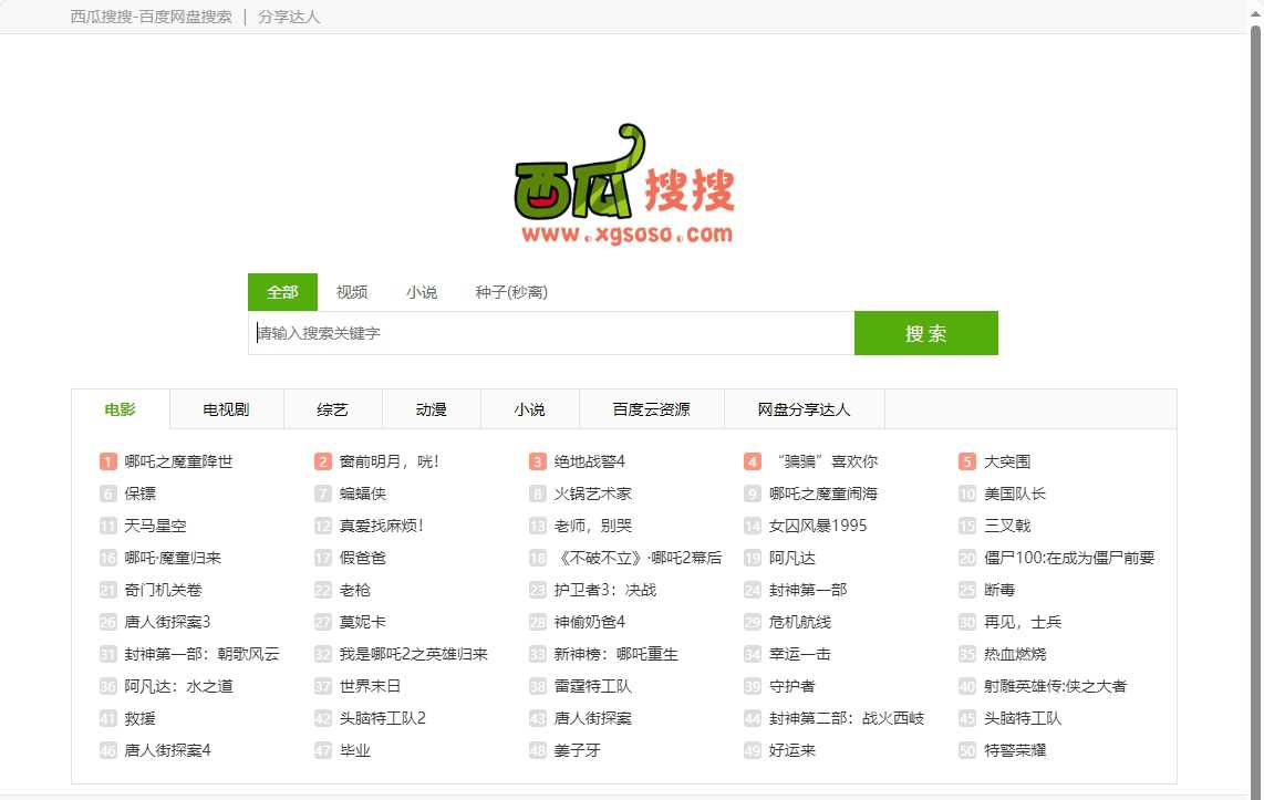 西瓜搜搜(xgsoso.com)是一个专业的网盘资源搜索引擎,专注于百度云、百度网盘等资源的搜索。它实时收录各类高清电影、视频、种子、小说等网盘资源,提供上亿级的资源下载,是名副其实的超级网盘搜索神器。