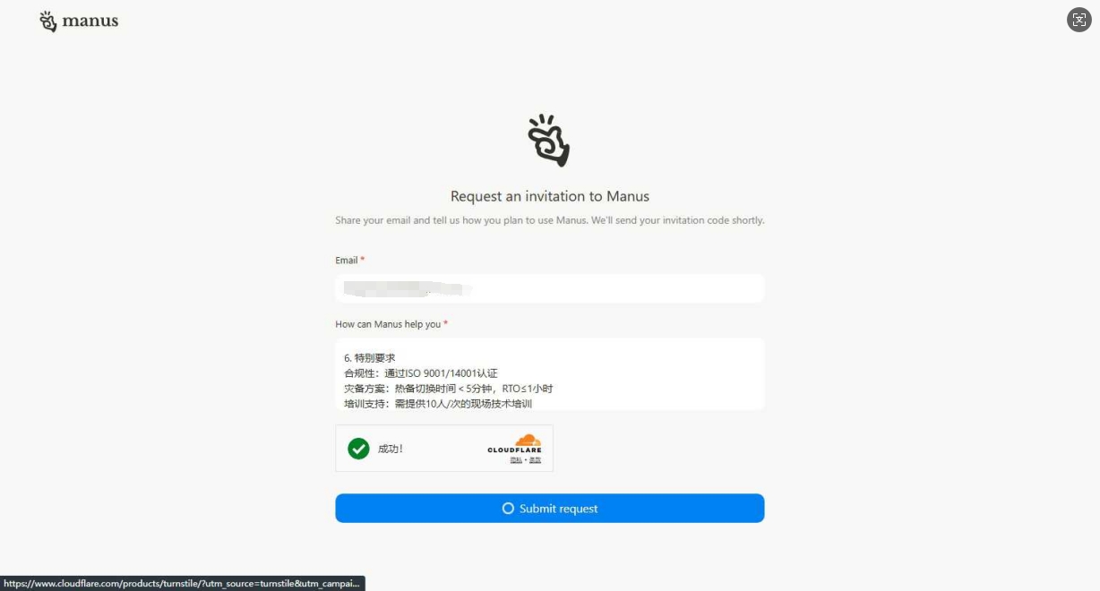 - 推特(https://x.com/ManusAI_HQ) Discord(https://discord.gg/gjuXBWaU),向官方人员友好的索要 Manus 内测邀请码。