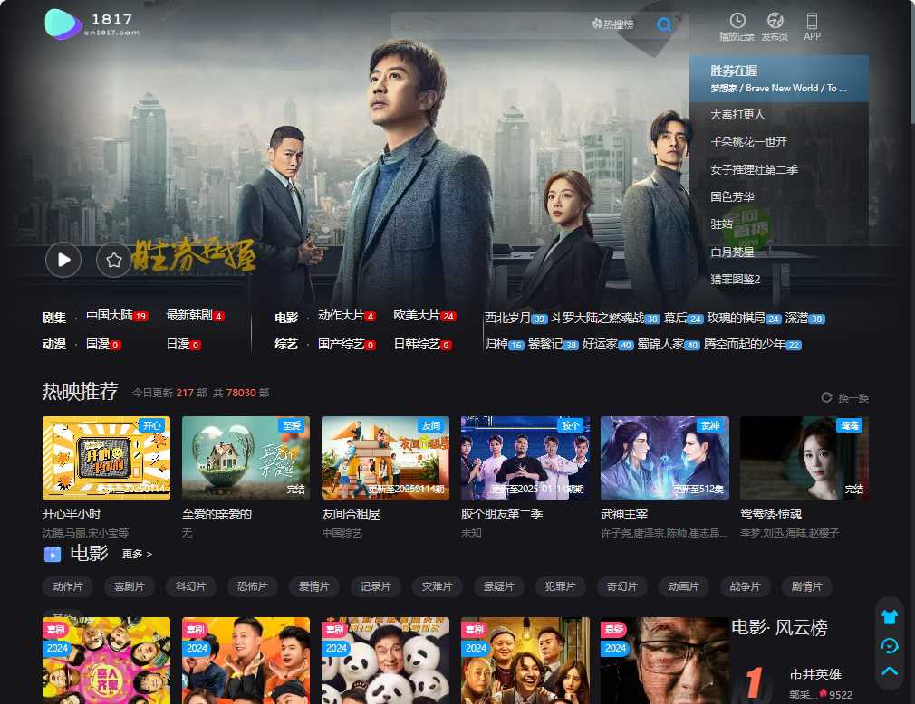 1817影视网是一款专为用户提供热门电影、高清电视剧和精彩短剧的手机免费在线观看平台。各类影视作品应有尽有,无论是动作、喜剧、爱情还是科幻,总能满足您的观影需求。我们的视频库每日更新,确保第一时间为您呈现最新热门大片。